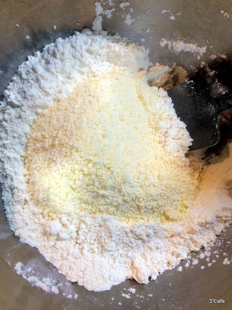 3℃afeではいつも、FP(フードプロセッサー)にバターと小麦粉をいれ、一気にバターパウダーを作っています。