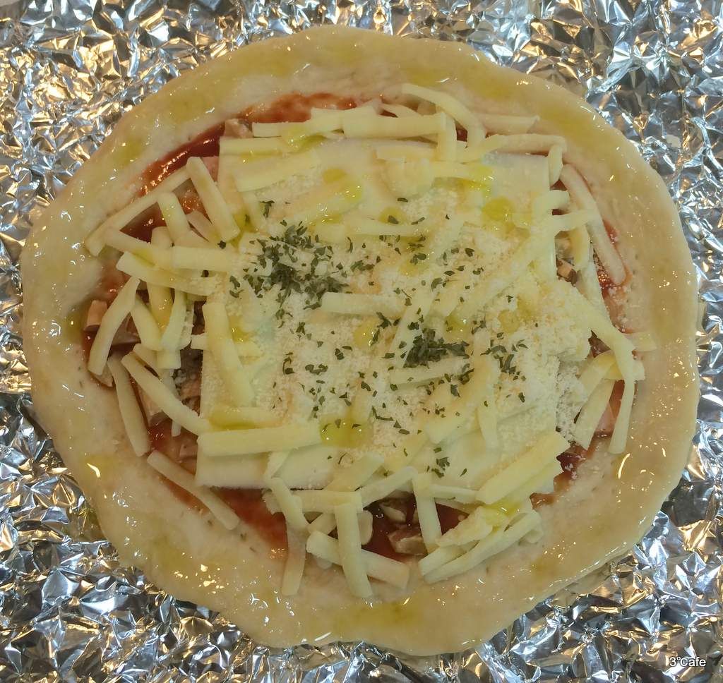 - 最後に、ピザの耳の部分にオリーブオイルを塗る。