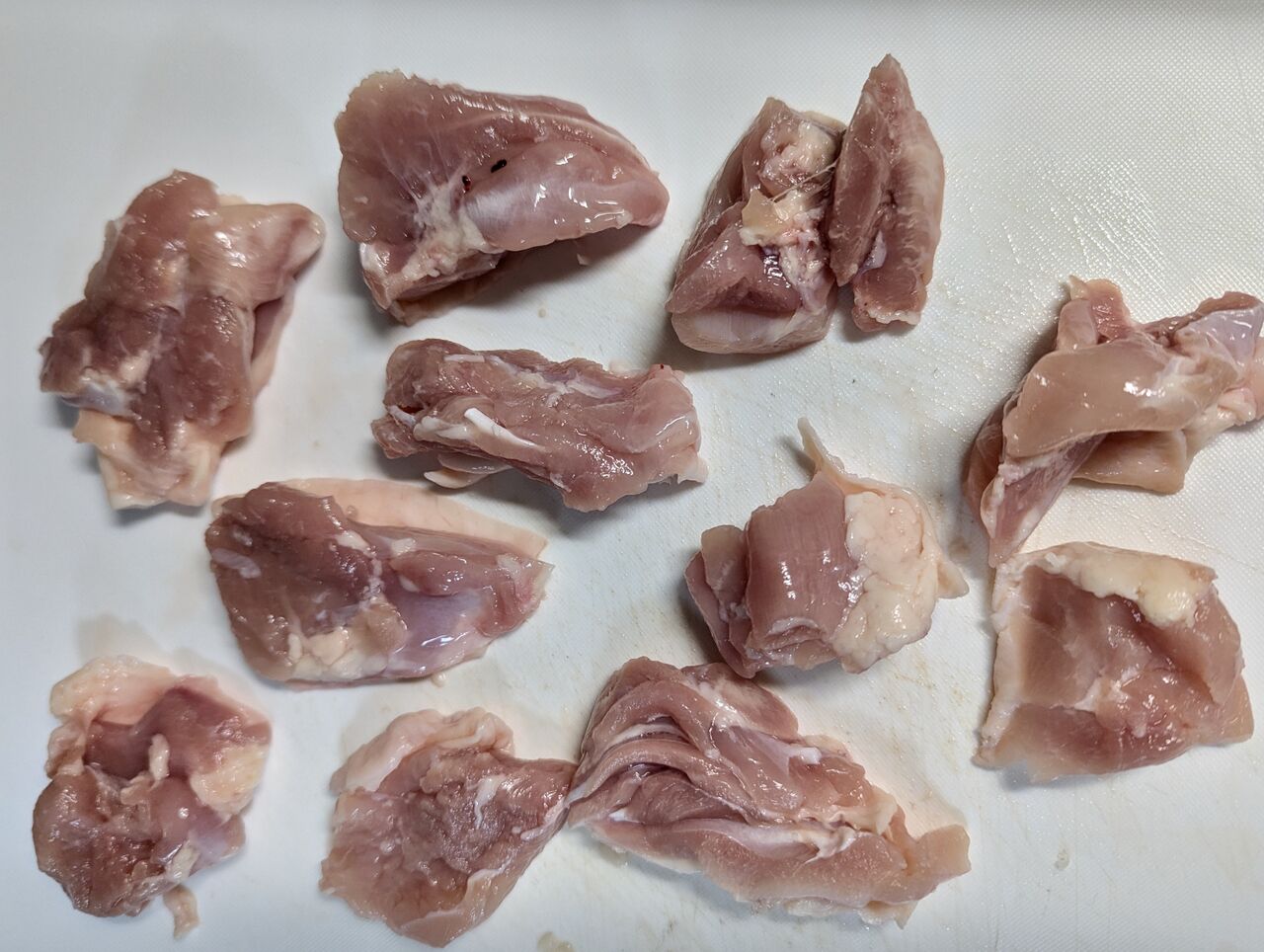 今回はもも肉を皮付きで使いました。もも肉(皮あり)もも肉(皮なし)